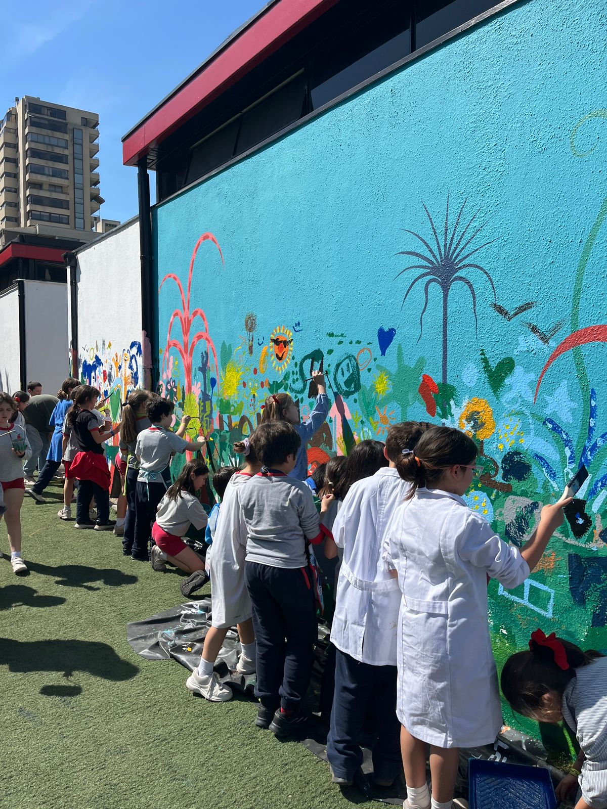 Los aprendizajes sobre la buena amistad que los niños y niñas han ido adquiriendo a lo largo del año quedaron plasmados en un mural, elaborado por un grupo de apoderados que postularon al proyecto Foco del CPMYA.